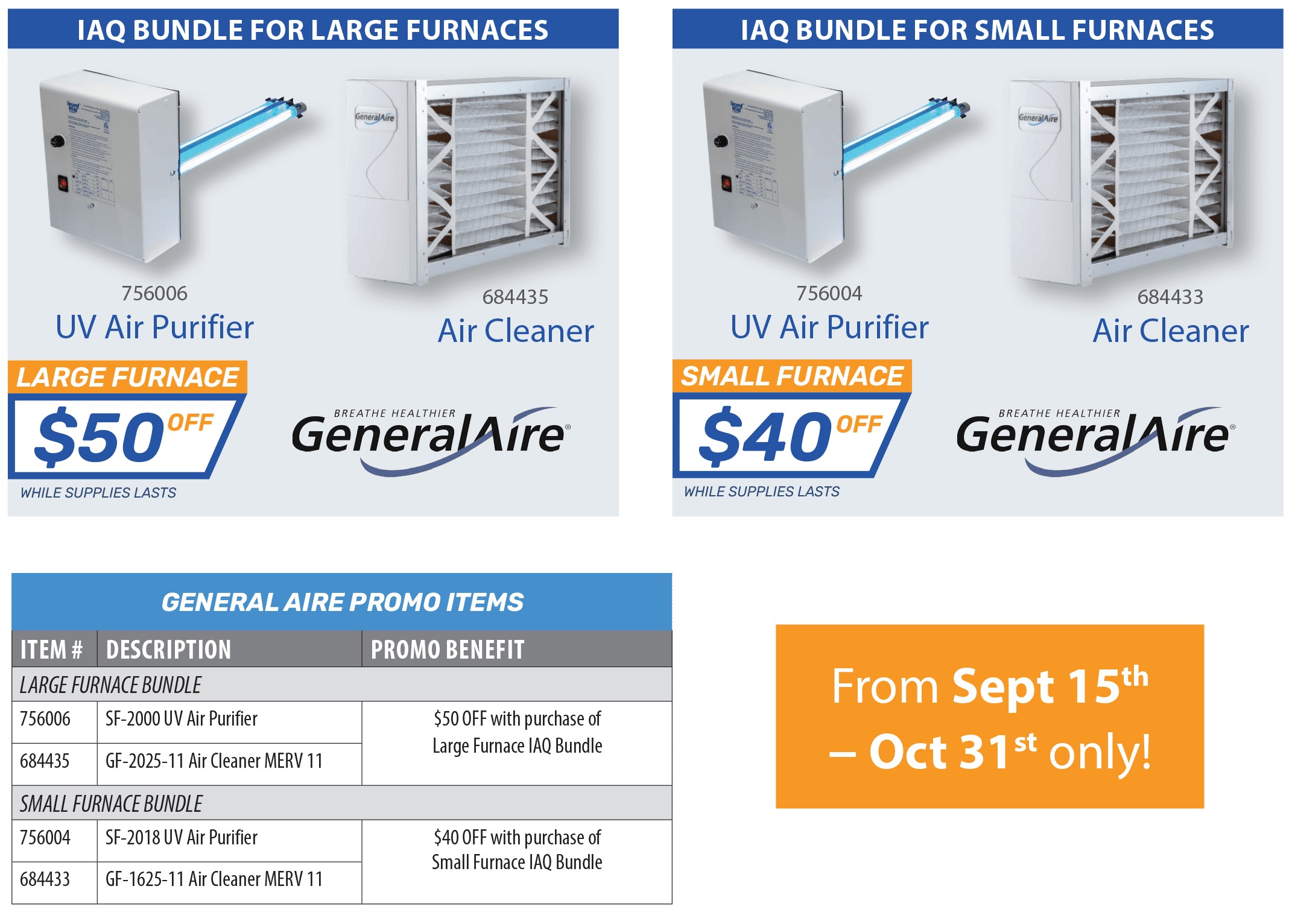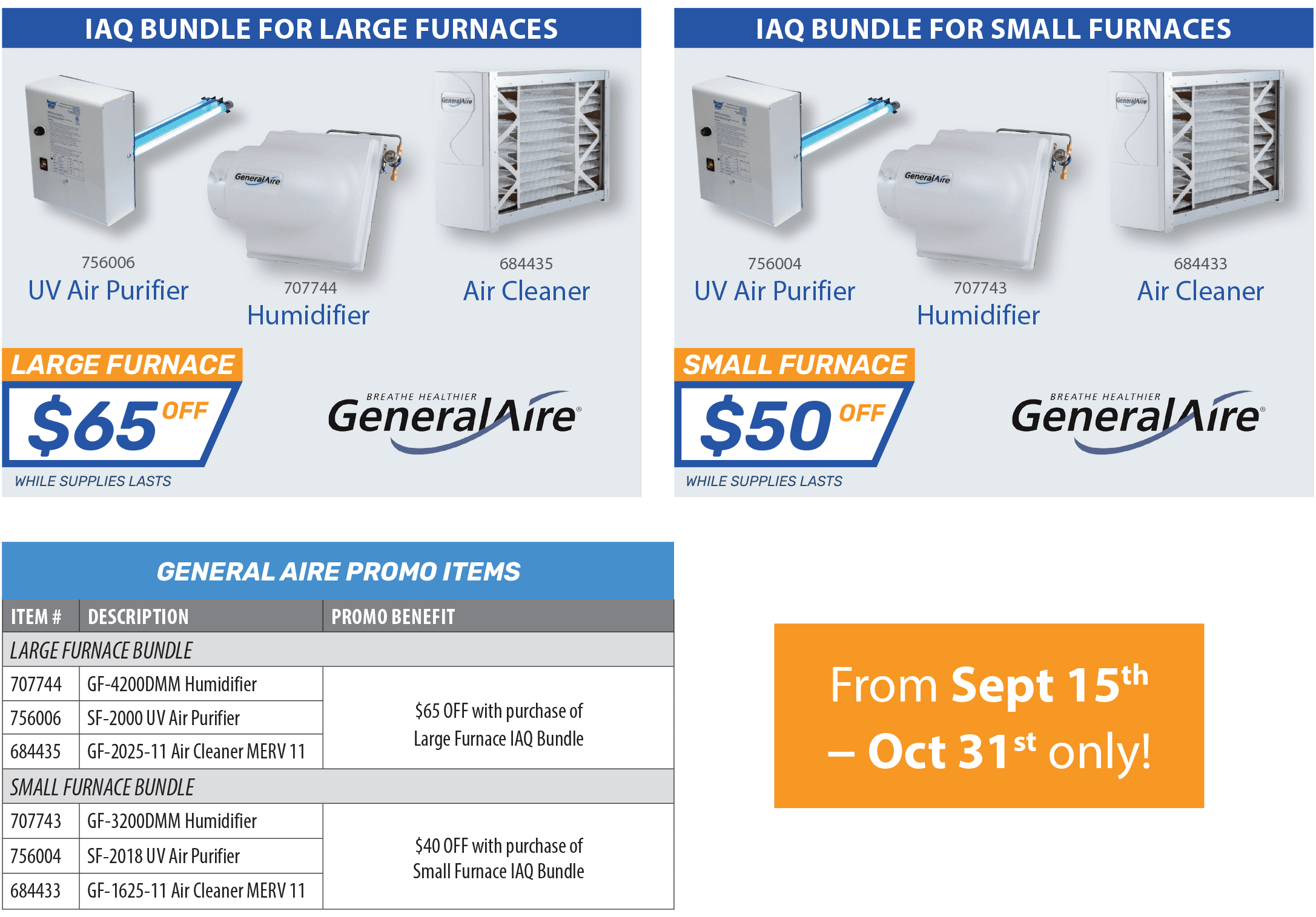 *IAQ bundle from our British Columbia and Thunder Bay branches do not include humidifier, rebates offered reflect this difference.